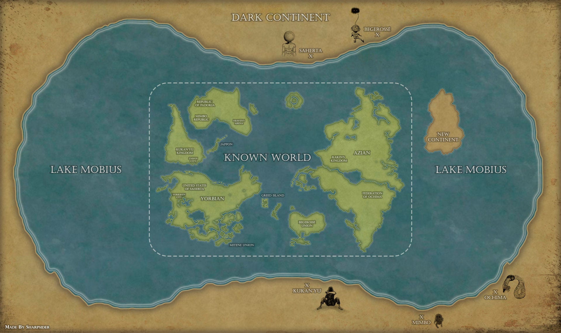 La géographie de Hunter × Hunter est l’un de ses ressorts les plus fascinants. Le monde humain s’organise en continents, républiques, royaumes et zones autonomes, dessinant une cartographie qui évoque à la fois la Terre et une projection alternative. On passe de l’île rurale de Whale Island, matrice simple et naturelle d’où part Gon — aux verticalités modernes de Yorknew City, capitale mafieuse saturée de néons et de marchés clandestins.